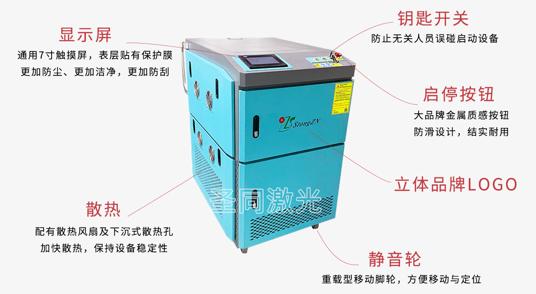 1. 采用FOBER高功率激光器及独特的脉冲调Q耦合技术设计生产的激光清洗机
